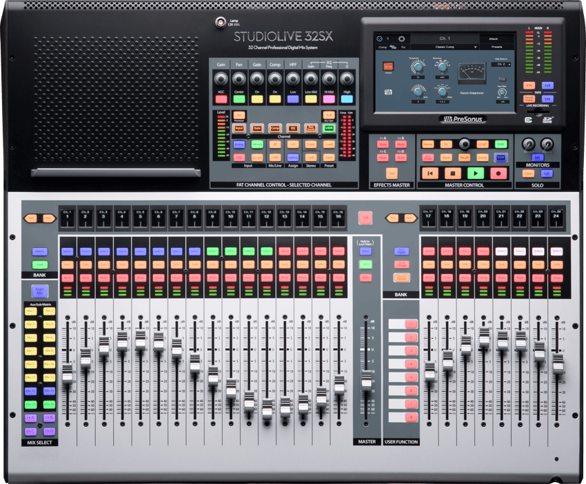 StudioLive 32SX 是一款紧凑型的 32 通道数字调音台,采用 25 推子布局,兼顾便携性与专业性能。其分层推子工作流程让用户可以通过两个推子层轻松管理全部 32 路输入通道,同时保留额外 8 个推子用于混音输出的操作访问。通过 AVB 网络协议,32SX 可灵活扩展,轻松连接 EarMix 16M 个性化监听调音器及 PreSonus NSB 系列舞台输入接口箱,实现舞台监听和远程输入的网络化部署。
